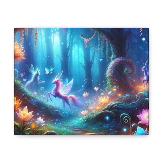 Enchanted Forest Canvas Art - Mystical Creatures and Magical Flora Wall Decor